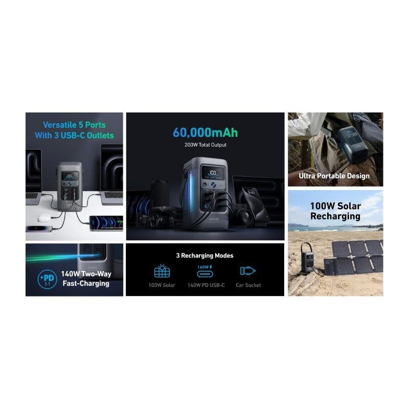 هروب بالطاقة الشمسية: عندما تحتاج رحلتك إلى شحن لا ينقطع، اشحنه بسلاسة واستدامة باستخدام لوحة طاقة شمسية بقوة 100 واط. هذه المحطة غير متوافقة مع Anker SOLIX PS30 (أو لوحات USB-C أخرى بقوة 5 فولت إلى 3 أمبير)، وPS200، وPS400.