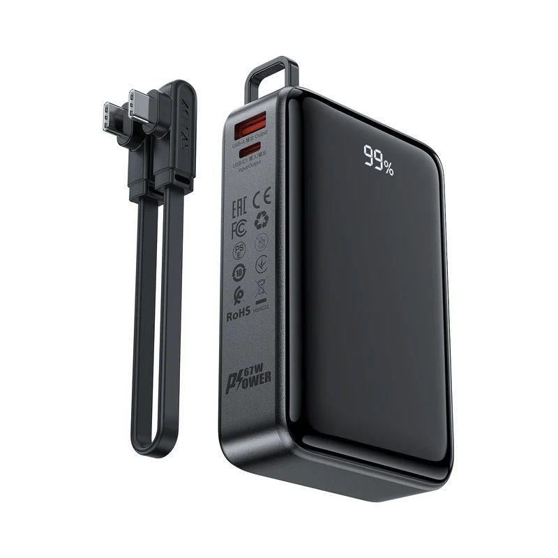 الميزات الإضافية: يأتي مع شاشة LED رقمية لعرض مستوى الشحن المتبقي، ويدعم تقنية Power Delivery (PD).