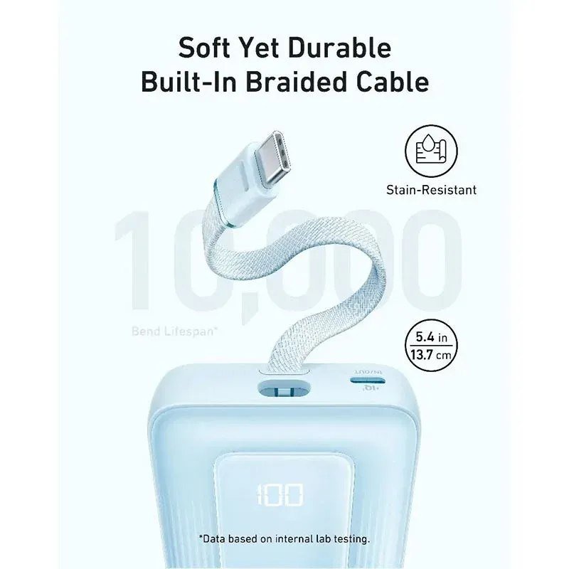 كابل USB-C مدمج: يتميز بكابل USB-C مضفر ومتين بطول 5.4 بوصة (13.7 سم)، تم اختباره لأكثر من 10000 انحناءة لتحمل الاستخدام اليومي.