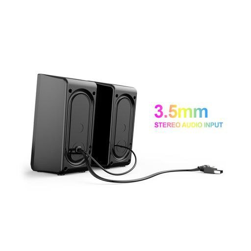 تأتي السماعات بمدخل صوتي ستيريو 3.5 ملم، مما يجعلها متوافقة مع أجهزة مختلفة مثل أجهزة الكمبيوتر المحمولة والأجهزة اللوحية وأجهزة الألعاب.