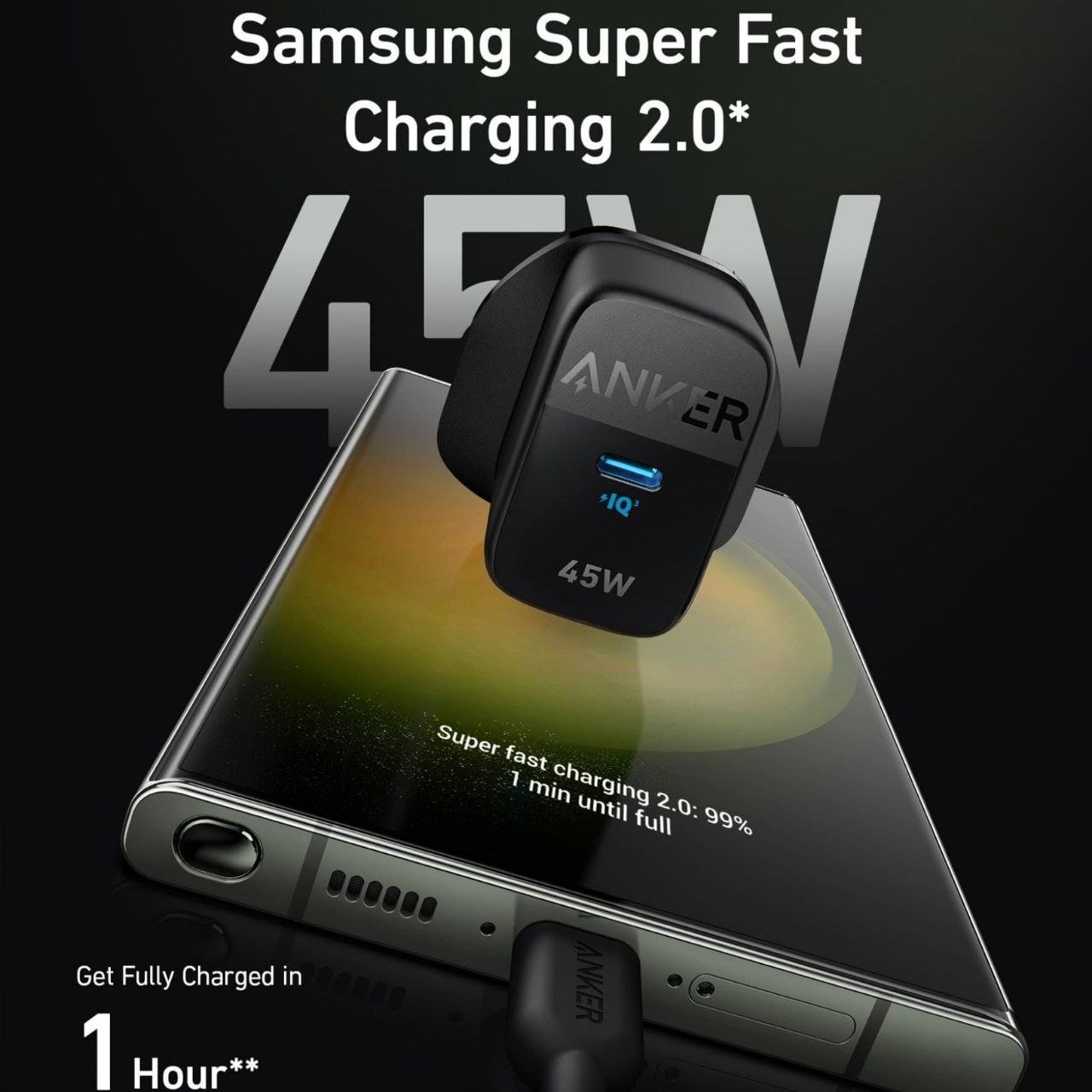شاحن جداري من شركة Anker بقدرة 45 واط.