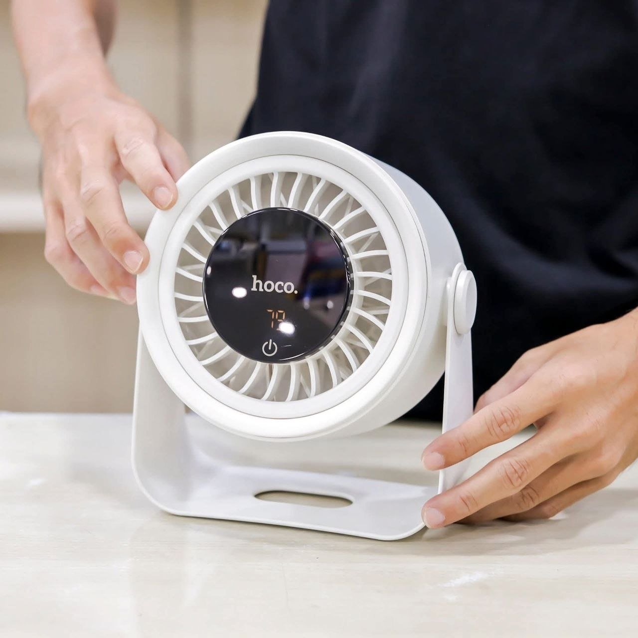 وهي مروحة تدوير هواء مكتبية قابلة للشحن وتتميز بتدفق هواء قوي وتصميم مزدوج المخرج.